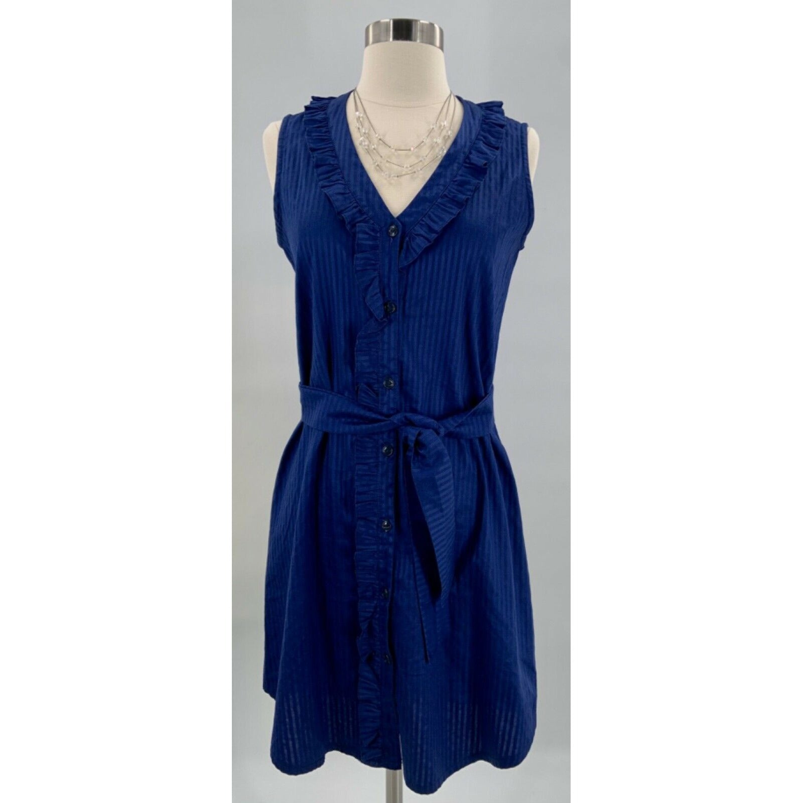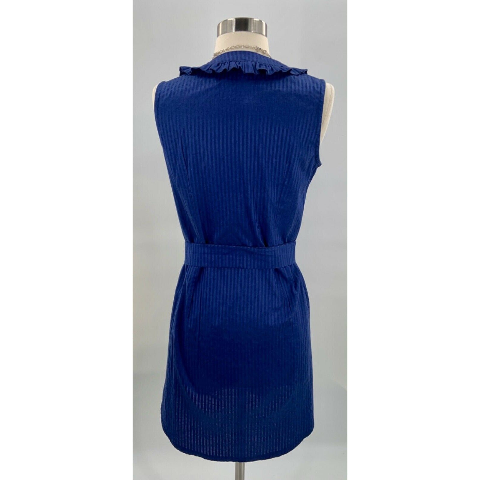 Kayce Hughes Women's Blue Textured Stripe Sleeveless Shirt Dress Ruffles size 0